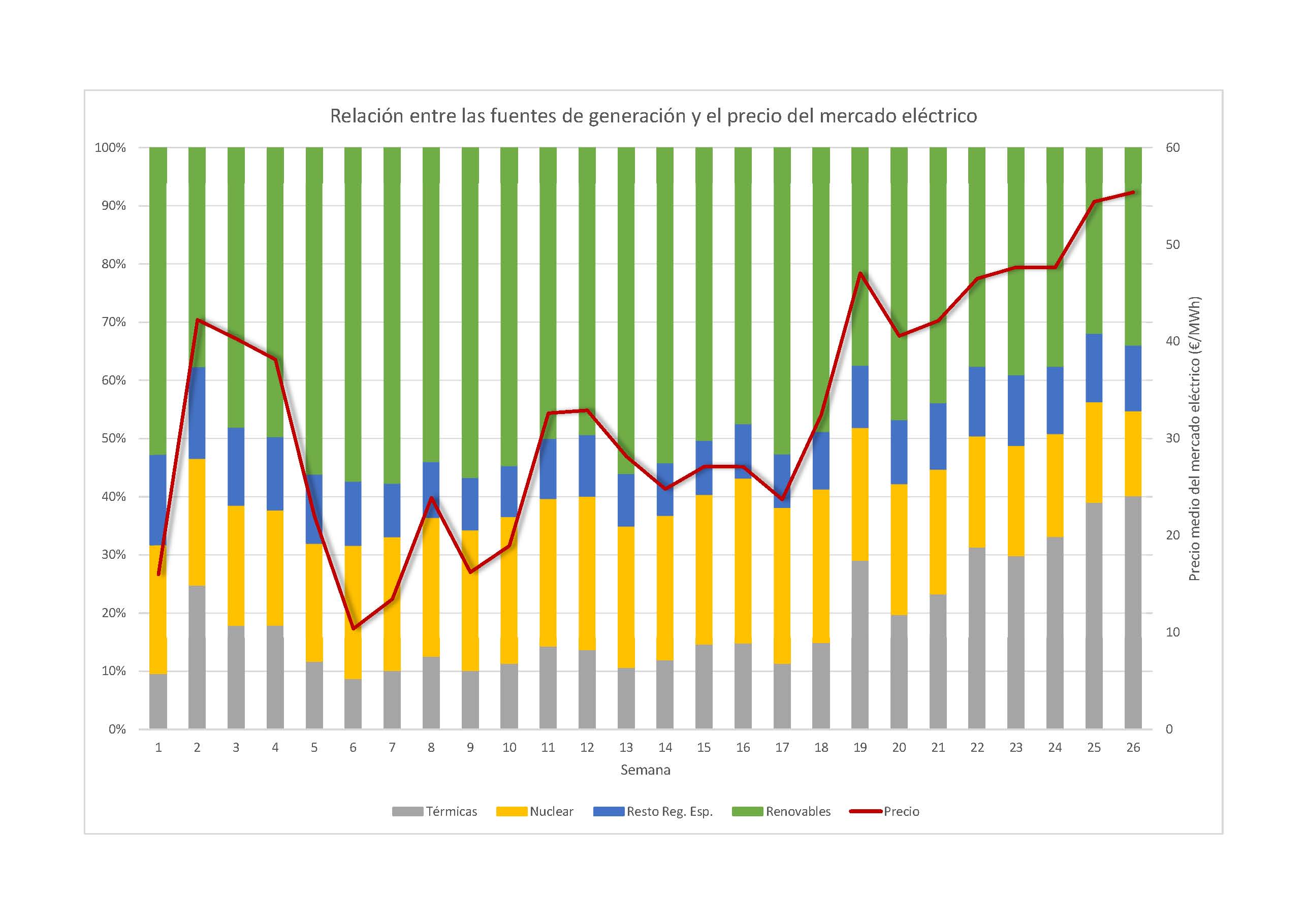 Relacion semanal fuentes de generacion y precio de mercado
